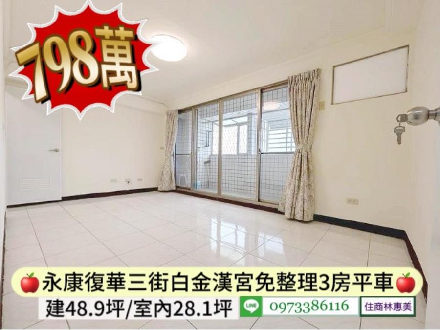永康區白金漢宮次頂樓免整理3房平車